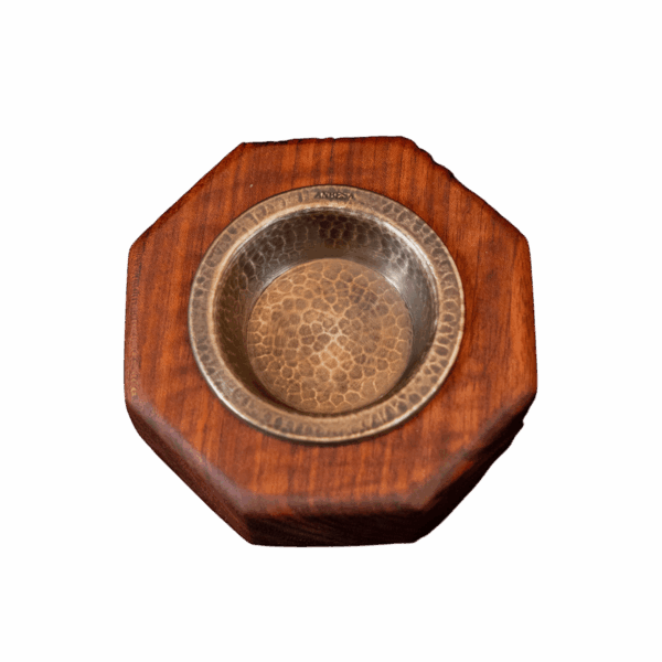Incensiere ottagonale in legno etimoè e coppa in ottone, 1 pz