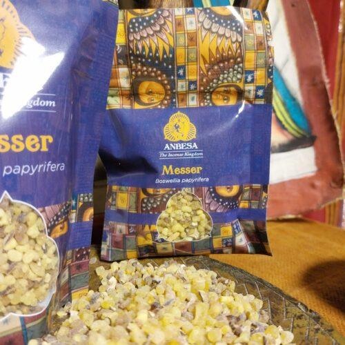 Il Messer proviene dalla Boswellia papyrifera, albero di incenso diffuso nelle regioni aride dell’Etiopia e del Corno d’Africa. È una delle specie di Boswellia storicamente più importanti nel commercio dell’incenso.