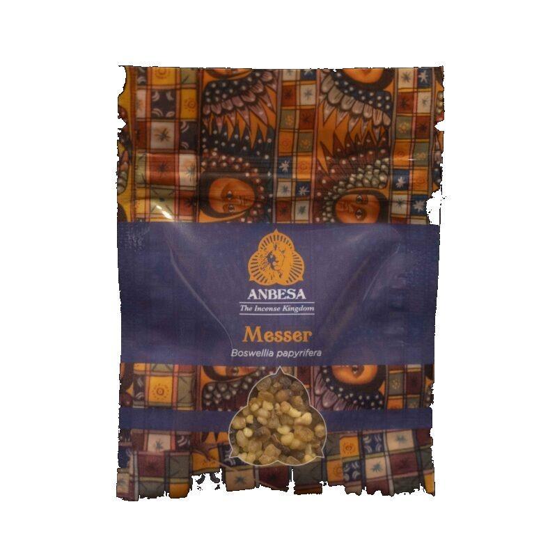 Il Messer è una resina naturale prodotta dalla Boswellia papyrifera, specie arborea diffusa nelle regioni degli altopiani tra Etiopia, Sudan, Eritrea. È una delle specie di Boswellia storicamente più importanti nel commercio dell’incenso.