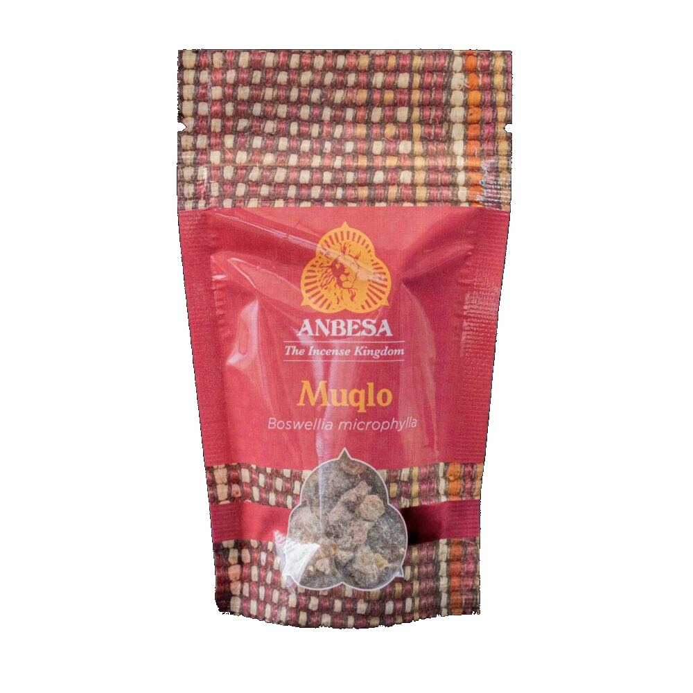 Il Muqlo è una resina naturale ottenuta dall’albero Boswellia microphylla, specie originaria delle regioni aride della Somalia. Si presenta in grani o frammenti dal colore ambrato scuro, talvolta con tonalità bruno-dorate, dalla consistenza compatta.